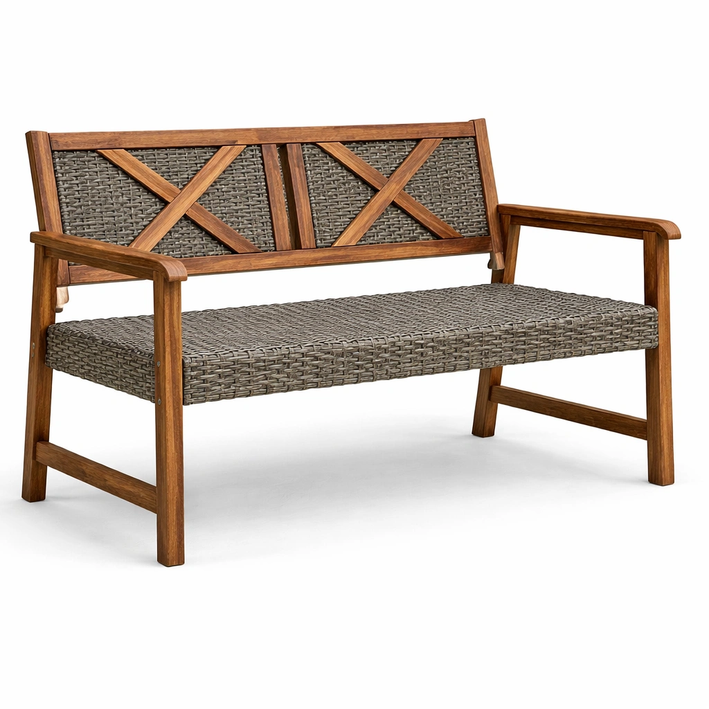 Banco de exterior de madera y ratán sintético marrón